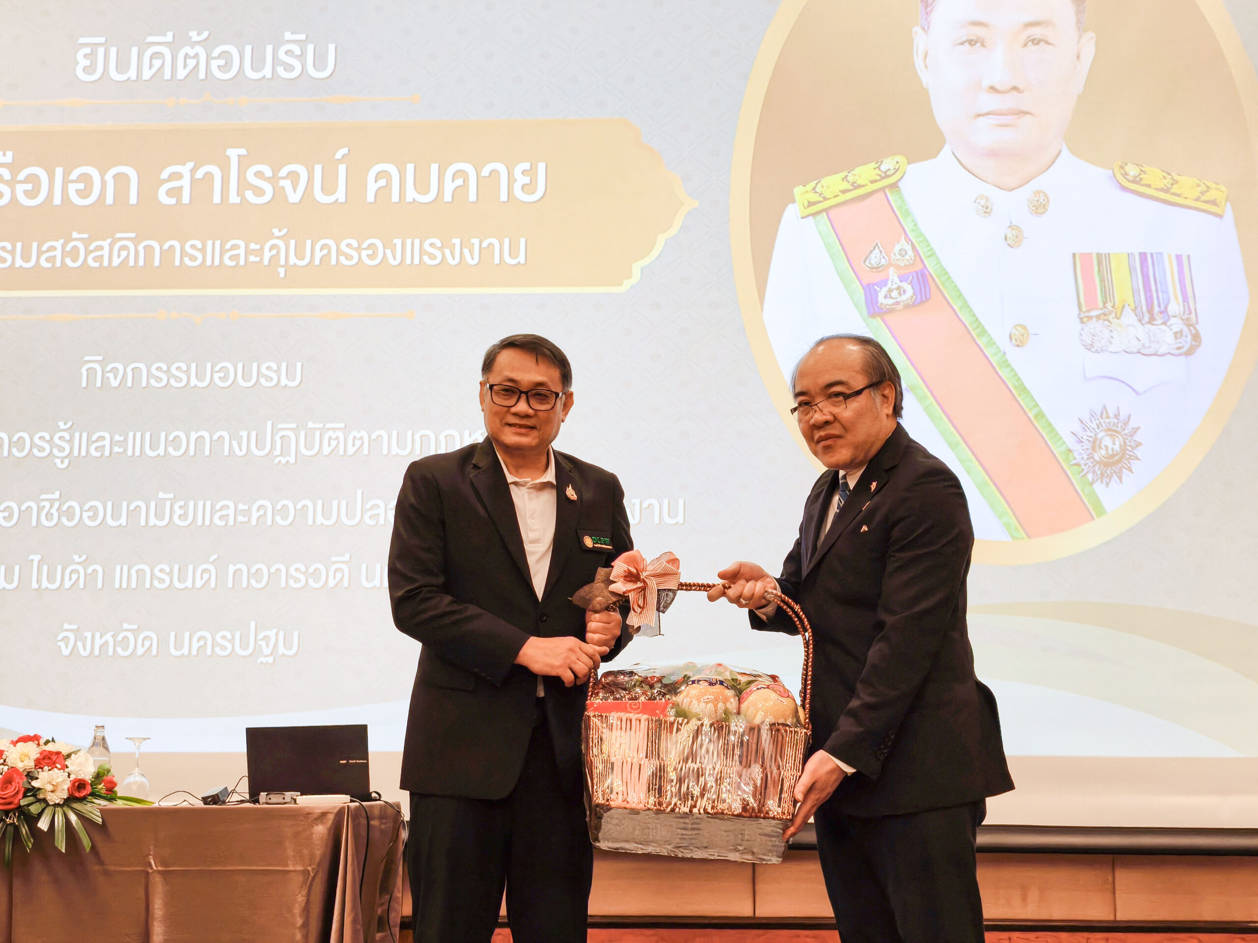 มาร่วมบรรยายให้ความรู้ สร้างความตระหนักรู้ และแนวทางปฏิบัติที่ถูกต้องแก่ จป.วิชาชีพ กว่า 220 ท่าน จากสถานประกอบกิจการในจังหวัดนครปฐมและพื้นที่ใกล้เคียง