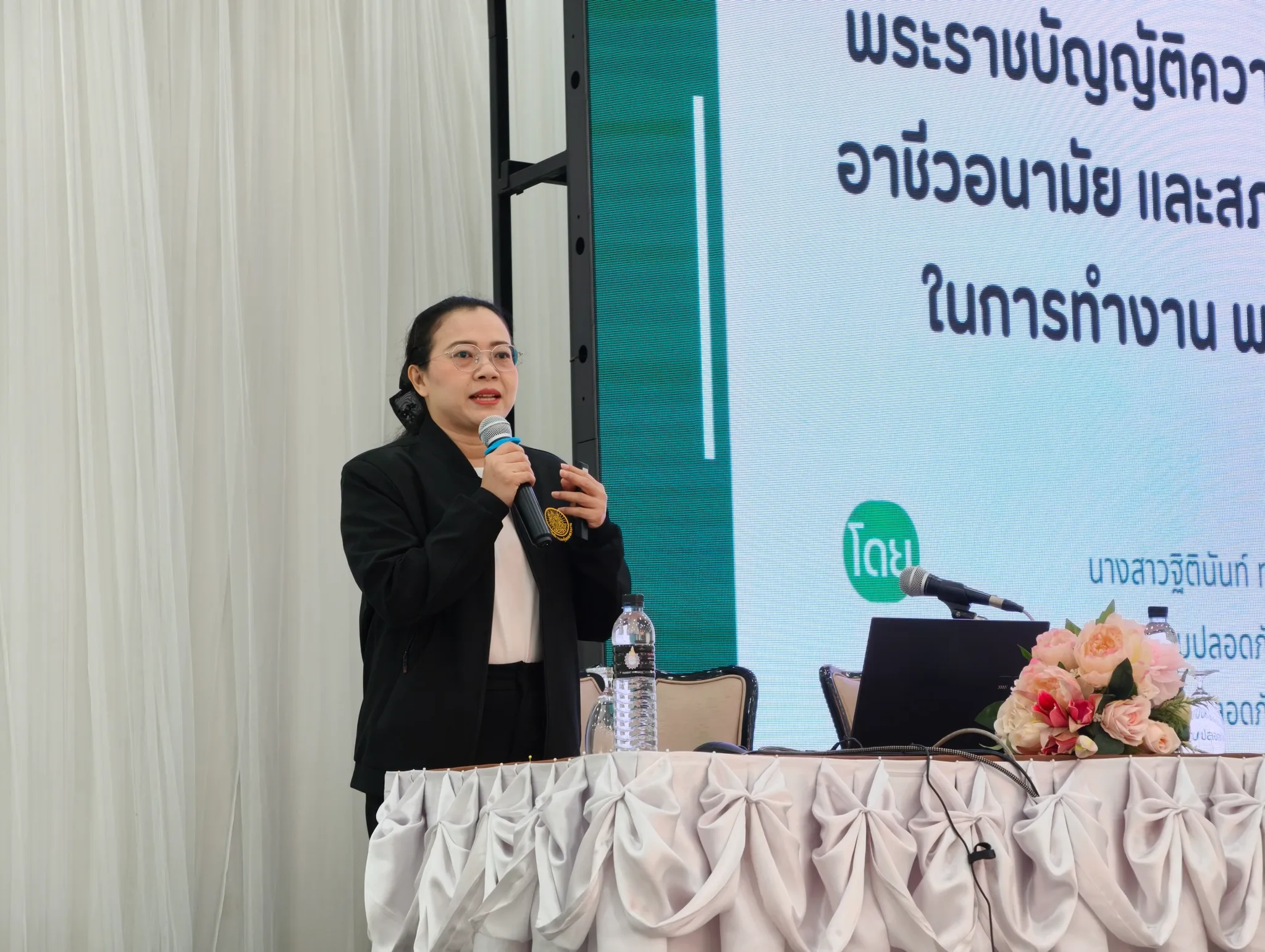 ได้จัดการอบรมเผยแพร่ความรู้สู่สถานประกอบกิจการ ณ ห้องสัมมนารอยัลฮอล โรงแรมซันทารา เวลเนส รีสอร์ท แอนด์ โฮเทล จังหวัดฉะเชิงเทรา โดยมีวัตถุประสงค์เพื่อสร้างความเข้าใจที่ถูกต้องเกี่ยวกับข้อกฎหมายที่สำคัญ ได้แก่:
